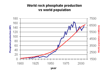 From a demonstrable and practical standpoint, we humans have not lived at sustainable populations since cheap fossil fuels and NPK fertilizers brought about massive crop yield increases begining in the late 1800s - which was the actual foundations of the Green Revolution. The human population then was about 2 billion. Today we are 3.5 times that number. In the next 30-50 years it is estimated we will add another 3-5 billion to our population. All the while we are adding people, we continue to deplete our global phosphate reserves and rising peak petroleum fuel prices increases the cost of production of the remaining phosphates. These are neither good nor sustainable trends. While we may well develop ways to re-capture phosphorus from our wastes and from the ocean, it isn't likely that any of these processes will ever approach the current low phosphate mining production costs - or be able to replace the phosphate minerals that we now mine that were deposited over eons. As one author put it, "we are consuming phosphorus faster and than the phosphorus cycle can replenish it."