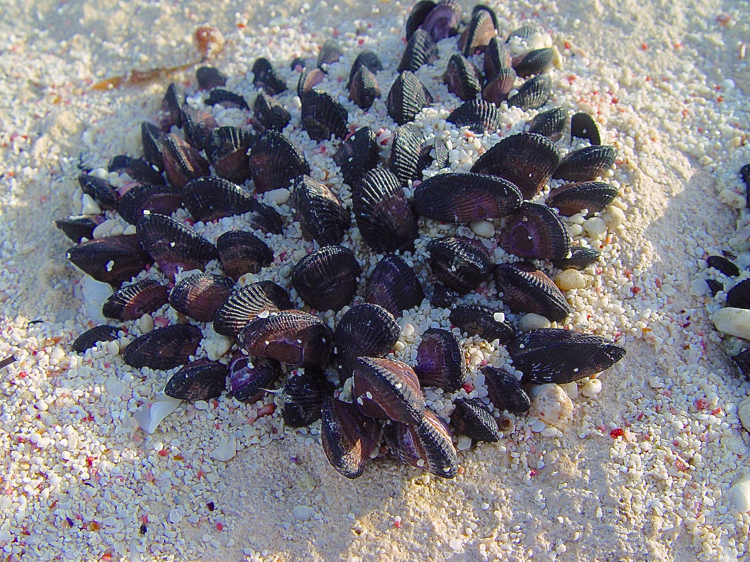 Colony of mussels - found along the rocky intertidal at Elbow Cay in the Abacos Islands, Bahamas.