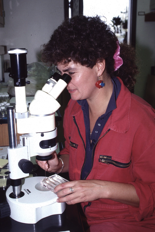 Dr. Alshuth performed ichthyoplankton research onboard the research vessels FS FRIEDRICH HEINCKE, FK UTHÖRN and FS VICTOR HENSEN in the German North Sea. To study the fish reproduction and recruitment ecology of the North Sea sprat, part of a long-term fisheries research project of the Reproduction Biology of the sprat, Sprattus sprattus, in the North Sea - funded by the DFG (Deutsche Forschungs Gemeinschaft) - she participated year-round in oceanic research expeditions. Dr. Alshuth used a variety of specialized plankton nets for ichthyoplankton collections: Bongo nets, ring plankton nets, and the Multiple Plankton Sampler MPS were deployed on these research vessels to collect fertilized sprat eggs and larvae from the pelagic environment. Plankton samples were preserved for further sprat egg and larval density analysis in the institute’s laboratory while other plankton samples were kept alive and studied immediately upon return at the Helgoland Institute of Marine Sciences. At the institutes's laboratory, live sprat eggs were sorted for rearing sprat larvae under different environmental conditions to study larval growth and the onset of otolith increment production during the larval fish stage.