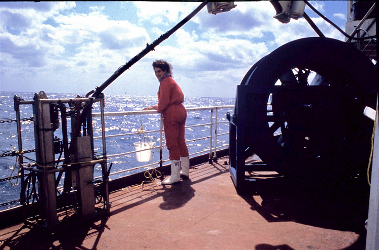 Dr. Alshuth participated in the two-months JGOFS Expedition (Joint Global Ocean Flux Study)in 1990 to the Atlantic - onboard the Canadian CSS HUDSON, a 300-foot research vessel of the Bedford Institute of Oceanography in Dartmouth Nova Scotia (Canada). In collaboration with the University of Kiel (Germany), Dr. Alshuth’s oceanographic research included biological and chemical oceanography studies such as copepod grazing experiments, physiological and behavioral studies of Atlantic copepods. Copepods were collected with ring plankton nets and the Tucker Trawl, a mid-water zooplankton trawl equipped with BIONESS data logger, from surface and mid-waters and kept alive in laboratories aboard the CSS HUDSON for further studies of their excretion and respiration rates, gut pigments, chlorophyll fluorescence of stomach, and ammonia and fecal pellets examinations. Water chemistry studies included CO2 and O2 production measurements using HPLC filtration techniques. Physical oceanography research included the use of CTD probes and Batfish, and the deployment of sediment and particle traps. Research included statistical analysis and preparation of reports, and publications including: