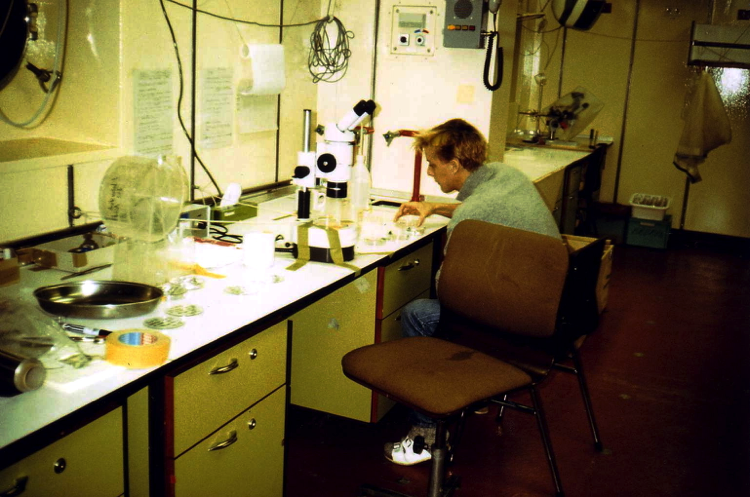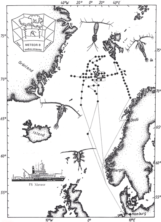 Dr. Alshuth participated in a two-month oceanographic expedition METEOR 8 (1+2) to the Arctic Sea - a journey into the endless night, aboard the research vessel METEOR of the Alfred-Wegener- Institute of Polar and Marine Research, Bremerhaven (Germany) in collaboration with scientists from Scripps Institute of Oceanography, La Jolla CA . This Greenland Sea Project's (GSP) expedition – aimed at observing and modeling the atmospheric, ice, oceanic and biological processes relevant to understanding the role of the Nordic Seas in the Global Climate System was part of the World Ocean Circulation Experiment (WOCE) – an interdisciplinary World's Climate Research Program investigating the ocean's role in global climate change. On this expedition, Dr. Alshuth studied Arctic ecology and reproduction studies of Arctic zooplankton as well as physiological experiments of Arctic copepods. Her oceanographic research included collection of oceanic plankton with Ring, Neuston sledge and Bongo nets. Chemical oceanography studies included water sampling with Rosette, Hydrocast and CTD water samplers, physical oceanography data collection with Acoustic Doppler Current Profiler (ACDP), ARGO floats, Shallow and Deep Ocean current meters and Drifter Buoys, analysis and evaluation of expedition samples, identification, distribution and abundance of Arctic copepods, statistical evaluation and preparation of reports, and publications including: