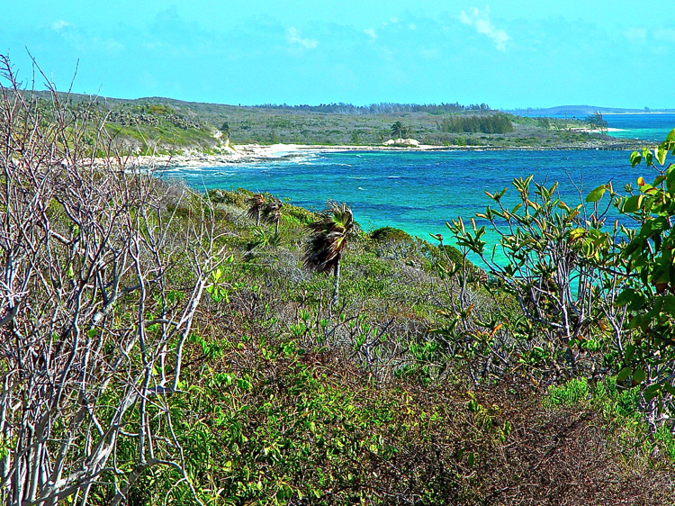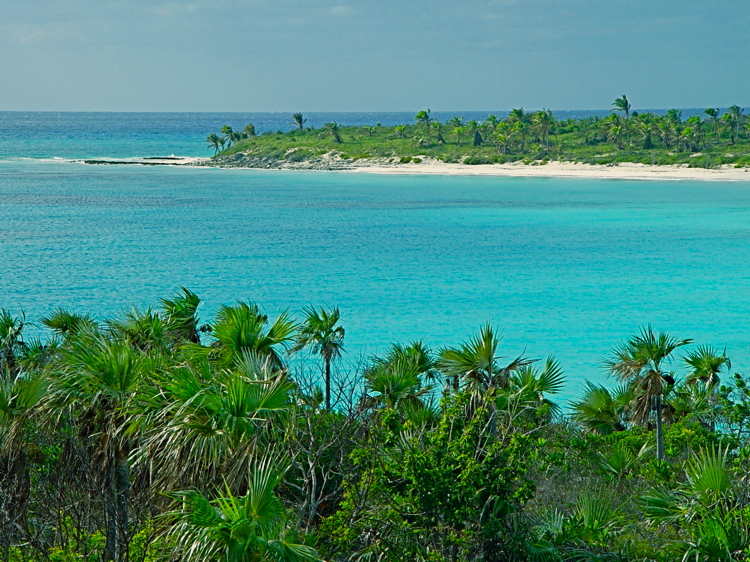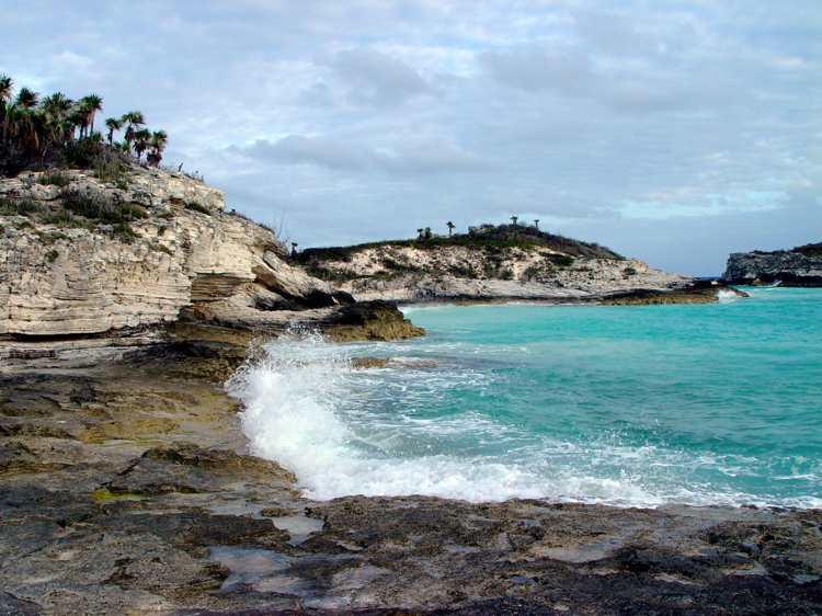 Limestone cliffs and sea caves are frequently found in the Exuma Cays.