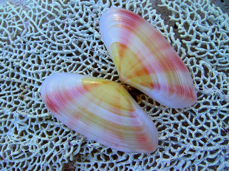 Sunrise Tellin (Tellina radiata) - a beautiful type of surf clam that lives in parts of the Bahamas’ quiet bays.